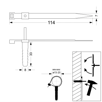Uchwyt paskowy szybkiego montażu z kołkiem 140mm biały USMPK-10 /50szt./
