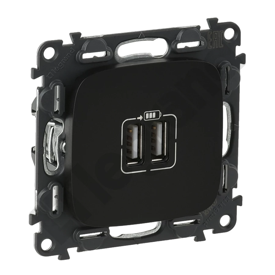 VALENA ALLURE MODUŁ CZARNY GNIAZDO ŁADOWARKA 2X USB TYP A+A 230V / 5V 2400MA