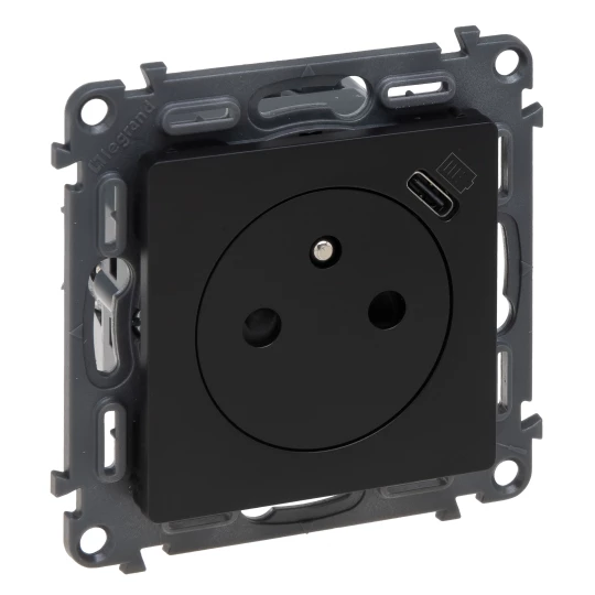 VALENA LIFE - GNIAZDO 2P+Z Z GNIAZDEM USB TYP C - CZARNE