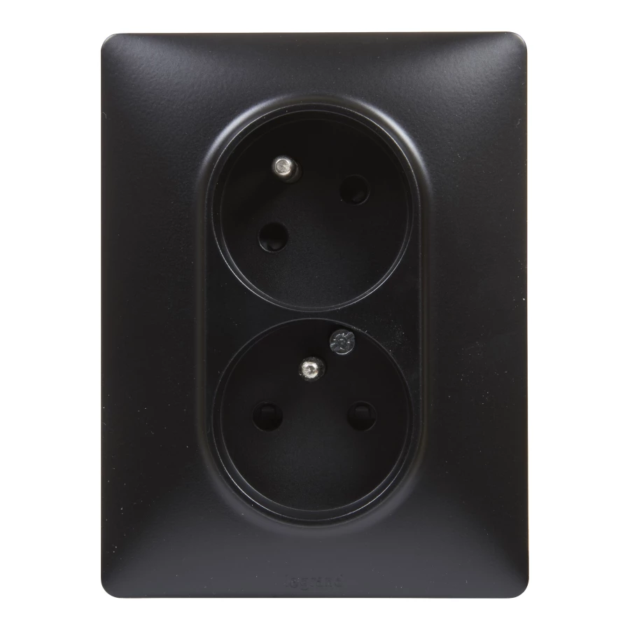VALENA LIFE - GNIAZDO 2X2P+Z TYPU MONOBLOK Z PRZESŁONĄ CZARNE 16 A – 250 V~
