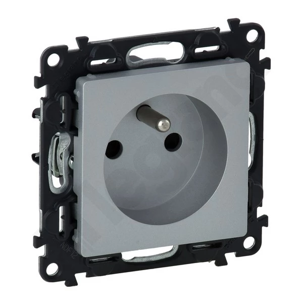 VALENA LIFE MODUŁ ALUMINIUM GNIAZDO 1X Z/U Z PRZESŁONAMI ZACISKI SPRĘŻYNOWE 16A 250V