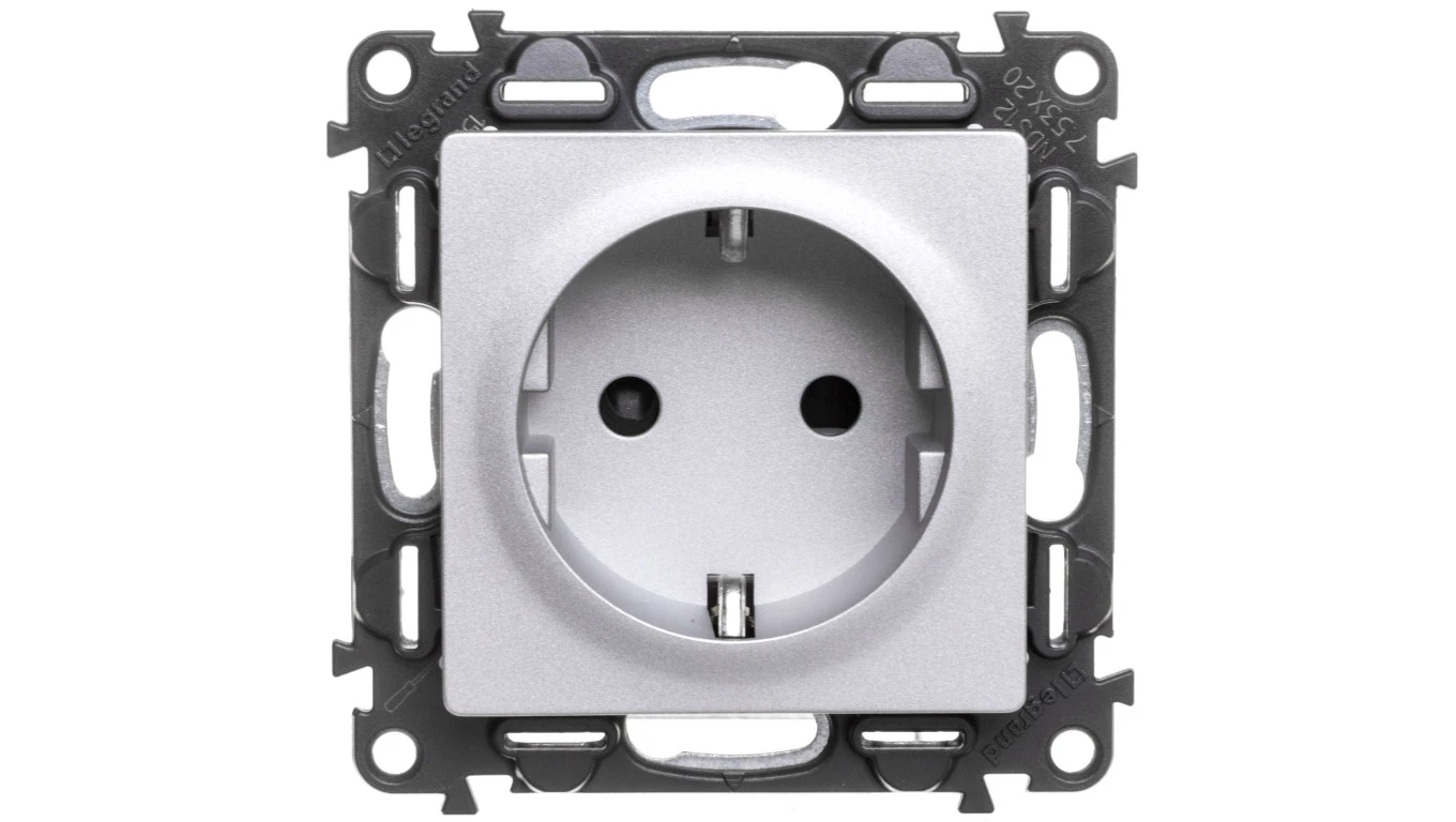 VALENA LIFE MODUŁ ALUMINIUM GNIAZDO 1X Z/U Z Z PRZESŁONAMI ZACISKI SPRĘŻYNOWE 16A 250V