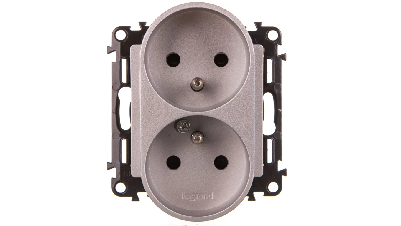 VALENA LIFE MODUŁ ALUMINIUM GNIAZDO 2X Z/U Z PRZESŁONAMI ZACISKI SPRĘŻYNOWE 16A 250V