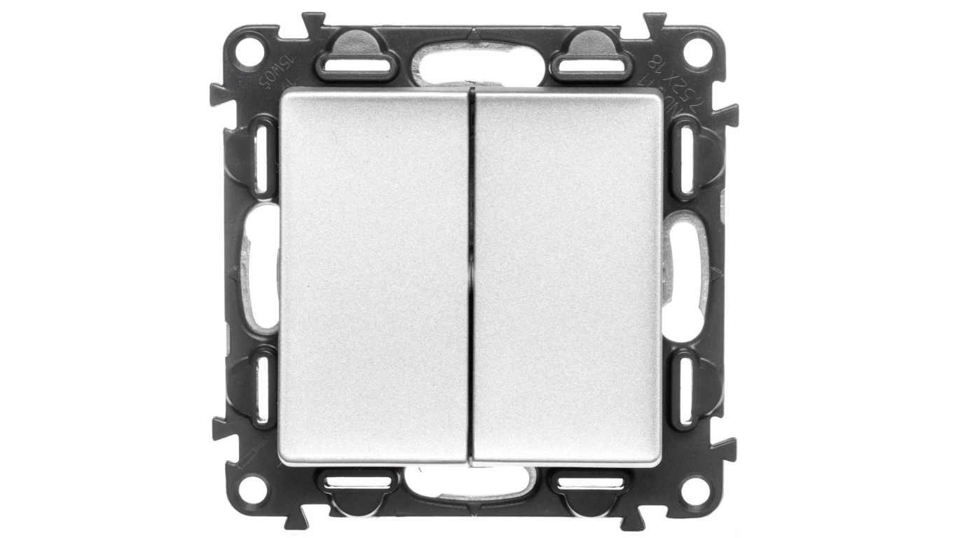 Przycisk podwójny przełączy NO/NC aluminium 6 A - 250 V~ VALENA LIFE o numerze katalogowym 752318 w kategorii Przyciski podtynkowe wielubiegunowe, Przyciski wielobiegunowe. Produkt wyprodukowany przez markę LEGRAND, seria VALIF.