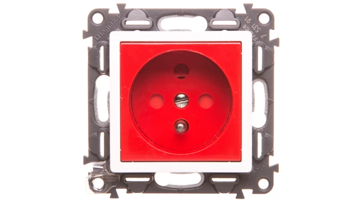 VALENA LIFE MODUŁ CZERWONY GNIAZDO 1X Z/U Z PRZESŁONAMI Z BLOKADĄ ZACISKI ŚRUBOWE 16A 250V