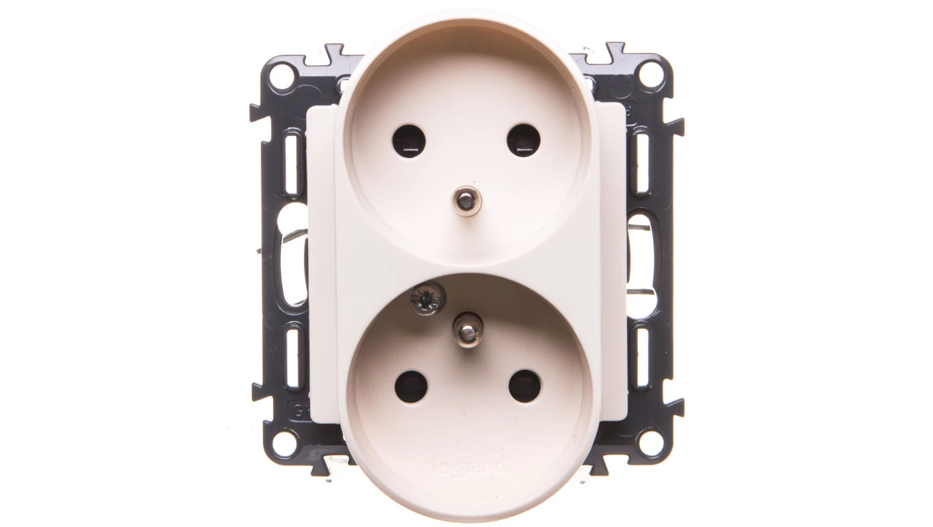 VALENA LIFE MODUŁ KREM GNIAZDO 2X Z/U Z PRZESŁONAMI ZACISKI SPRĘŻYNOWE 16A 250V