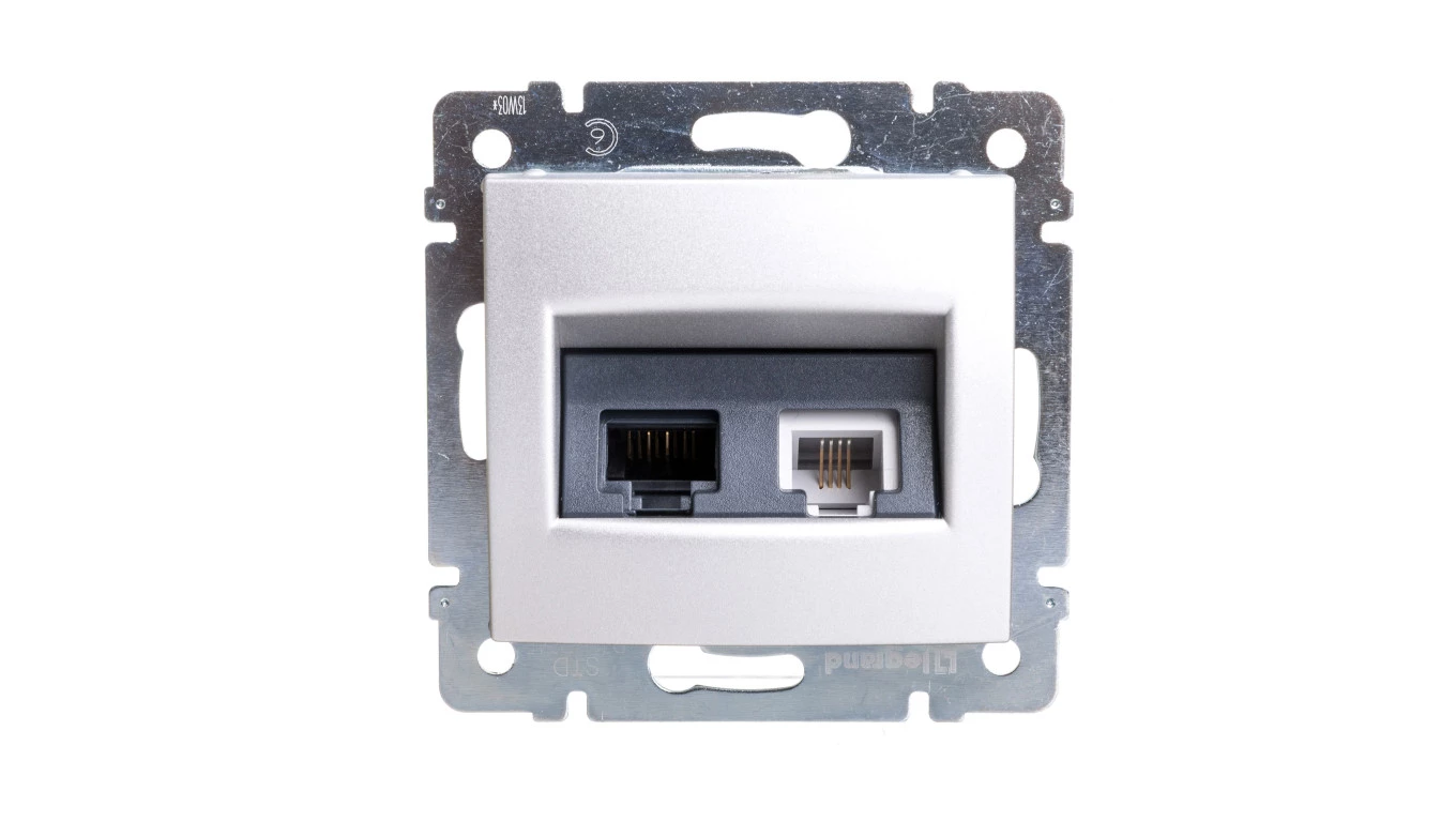 VALENA MODUŁ ALUMINIUM GNIAZDO TELEINFORMATYCZNE 1X UAE 4, 1X UAE 8 CAT.6 UTP SKOŚNE