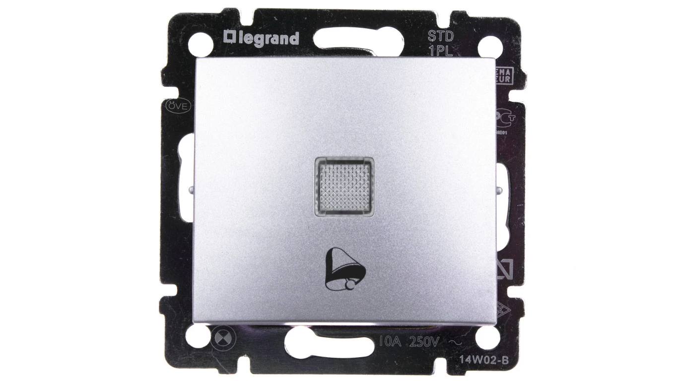 VALENA MODUŁ ALUMINIUM PRZYCISK "DZWONEK" PODŚWIELANY ZACISKI SPRĘŻYNOWE 10A 250V