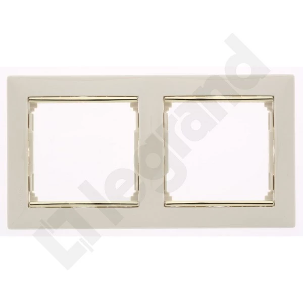 Ramka 2-krotna pozioma krem/złoty Valena o numerze katalogowym 774152 w kategorii Ramki, Ramki, klawisze, plakietki. Produkt wyprodukowany przez markę LEGRAND, seria VALEN.