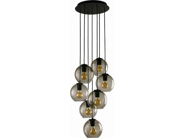 VETRO VII DYMIONY/ CZARNY OPRAWA WISZĄCA 7X E27/ 25W IP20 SZKŁO/ STAL LAKIEROWANA