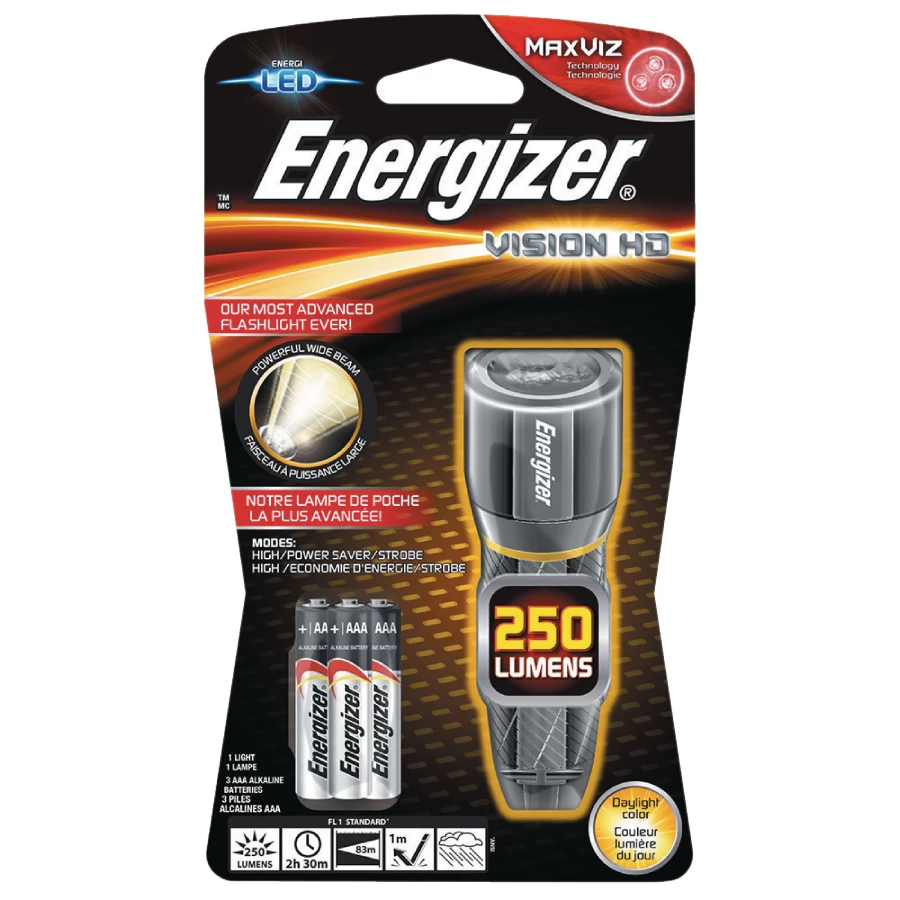 VISION HD METAL LATARKA RĘCZNA METALOWA 3X LR03/AAA 250LM 53M + BATERIE
