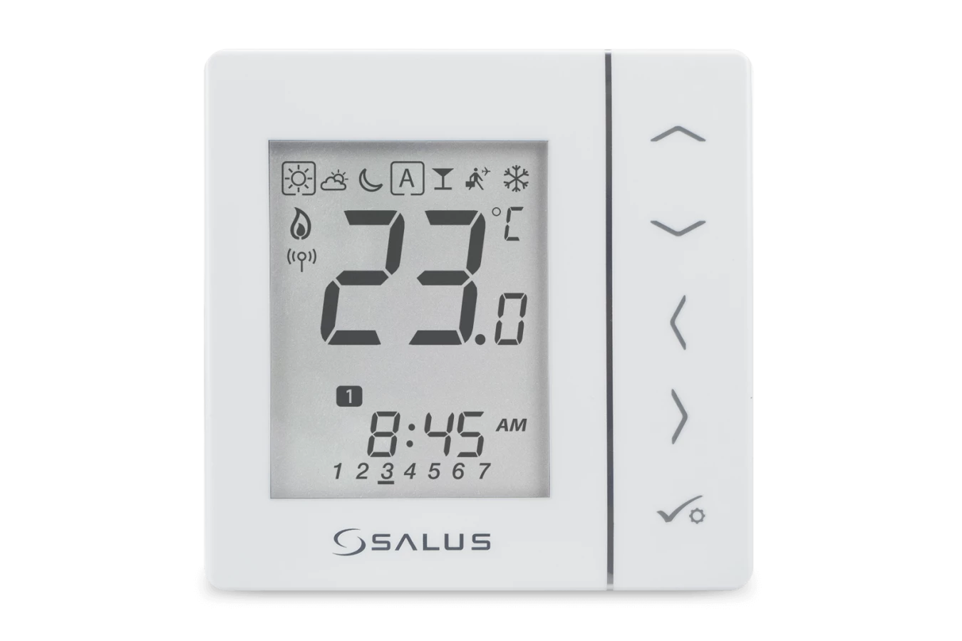 Regulator temperatury bezprzewodowy SALUS VS10WRF 230V programowalny tygodniowy podtynkowy biały 4w1 o numerze katalogowym   VS10WRF w kategorii Regulatory temperatury>Regulatory programowalne. Produkt wyprodukowany przez markę SALUS.