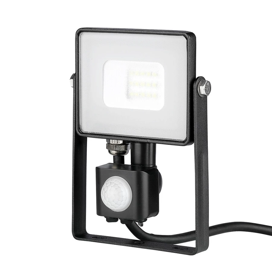 VT-10-S-B CZARNY OPRAWA NAŚWIETLACZ LED 10W WW 3000K 800LM IP65 IK05 100ST + CZUJNIK RUCHU ALUMINIUM