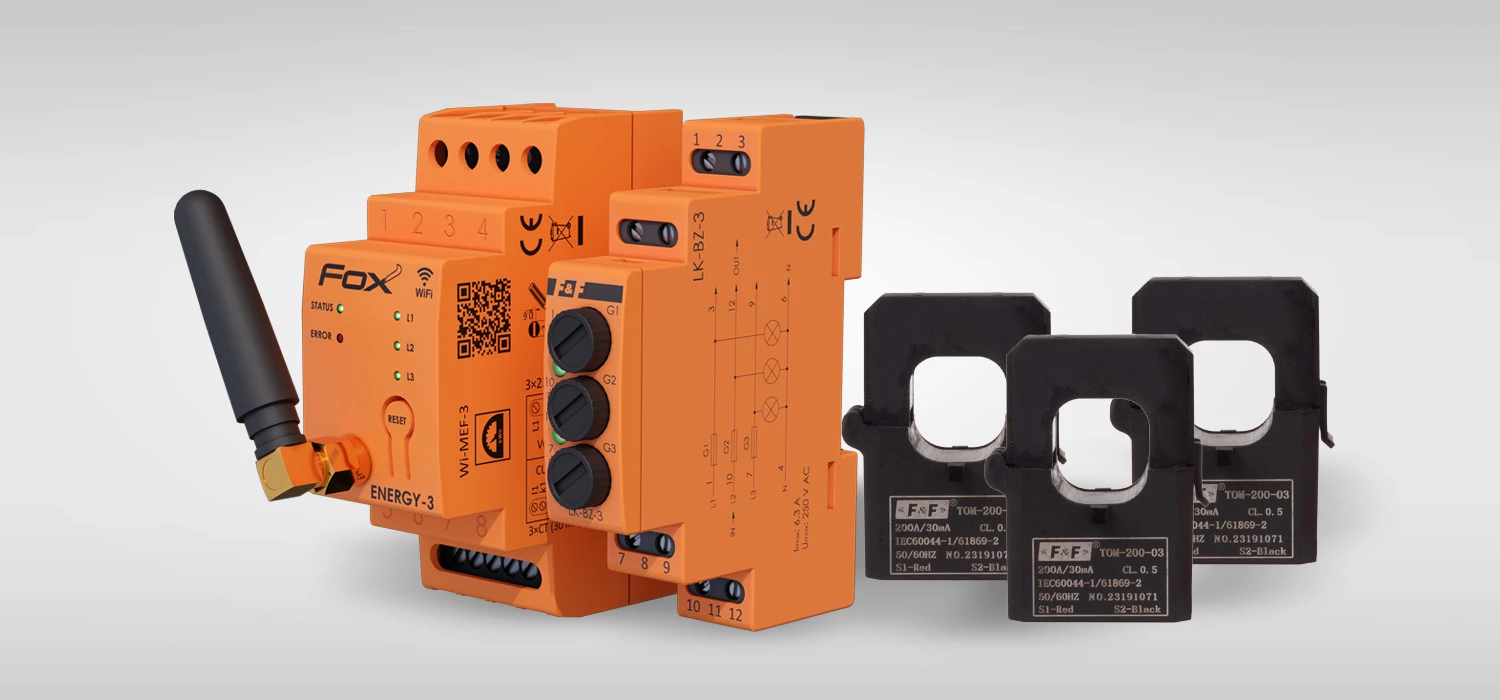 Zestaw: monitor zużycia energii MEF-3-200 FOX z lampką LK-BZ-3 o numerze katalogowym   WI-MEF-3-200SET w kategorii Aparatura kontrolno-pomiarowa>Liczniki energii. Produkt wyprodukowany przez markę F&F, seria FOX.