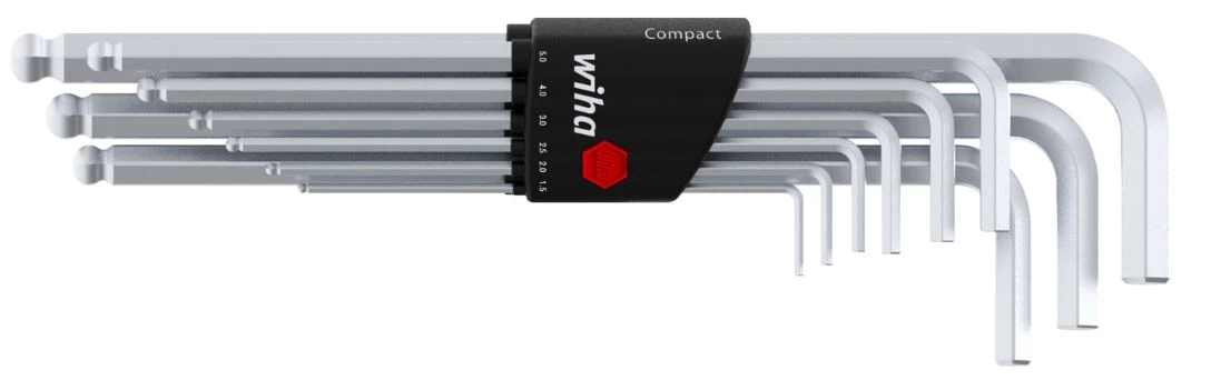 WIHA ZESTAW KLUCZY TRZPIENIOWYCH W UCHWYCIE COMPACT SZESCIOKATNY Z GLÓWKA KULISTA CHROMOWANY MATOWO