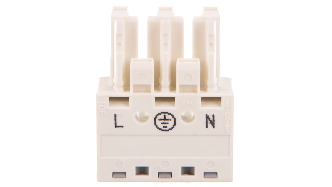 gniazdo; z obudową odciążającą przewody; 3-bieg.; kodowanie A; 4,00 mm²; biały