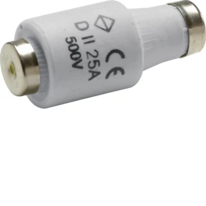 Wkładka bezpiecznikowa DII/E27, wykonanie szybkie F (Bi-Wts) 25A 500VAC o numerze katalogowym LE27F25 w kategorii Wkładki bezpiecznikowe DII, Wkładki bezpiecznikowe typu D. Produkt wyprodukowany przez markę HAGER.