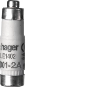 Wkładka bezpiecznikowa D01 gG 2A 400VAC o numerze katalogowym LE1402 w kategorii Wkładki bezpiecznikowe D01, Wkładki bezpiecznikowe typu D0. Produkt wyprodukowany przez markę HAGER.