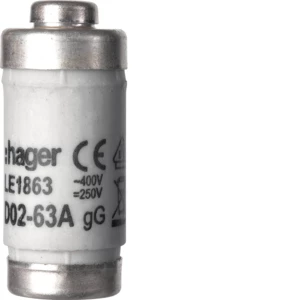 Wkładka topikowa D02 gG 63A 400VAC o numerze katalogowym LE1863 w kategorii Wkładki bezpiecznikowe D02, Wkładki bezpiecznikowe typu D0. Produkt wyprodukowany przez markę HAGER.