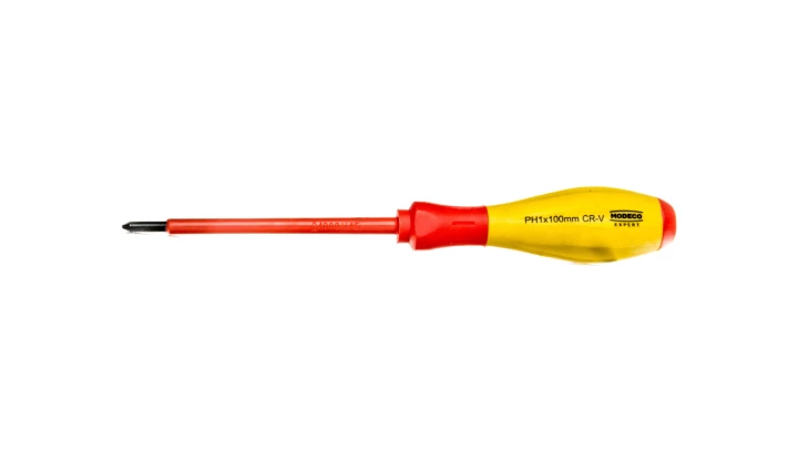 WKRĘTAK IZOLOWANY PH1 X100 MM/1000V [EXPERT] o numerze katalogowym MN-10-562 w kategorii Wkrętaki, Wkrętaki i szczypce. Produkt wyprodukowany przez markę MODECO EXPERT.