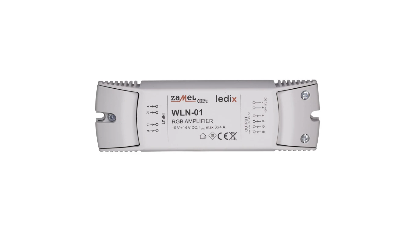 Wzmacniacz RGB, typ: WLN-01 o numerze katalogowym LDX10000011 w kategorii Zasilacze do LED, Zasilanie oświetlenia. Produkt wyprodukowany przez markę ZAMEL.
