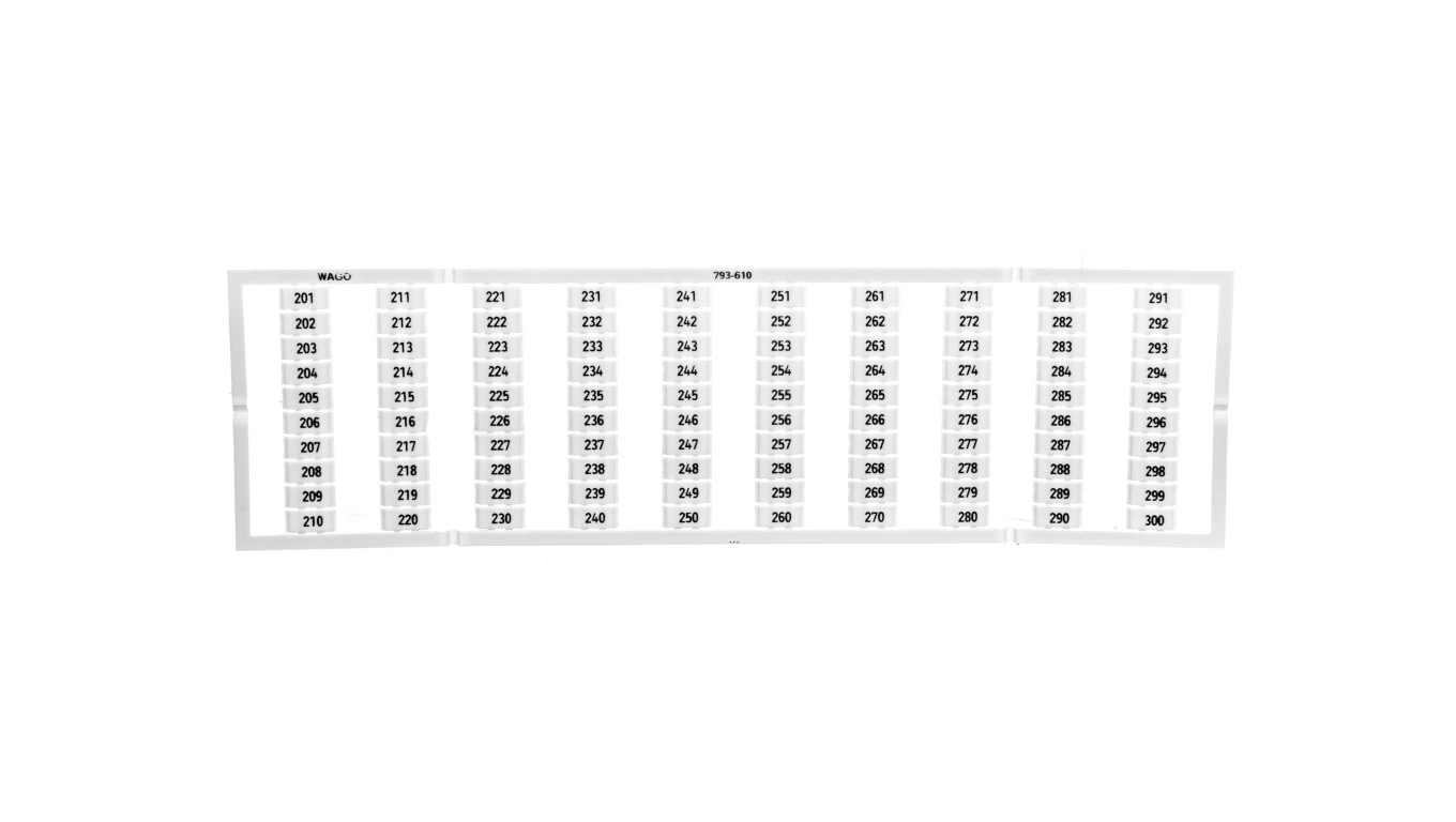 mata oznacznikowa WMB; jako karta; z nadrukiem; 201 ... 300 (1x); nierozciągalne; nadruk pionowo; do montażu zatrzaskowego; biały