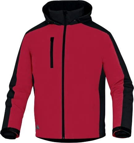 Bluza z poliestru (96%) i elastanu (4%), 2 warstwy laminowane, podszewka z tafty Czerwono-czarny XL o numerze katalogowym   VIGORNXG w kategorii Odzież robocza>Bluzy, kurtki i spodnie robocze. Produkt wyprodukowany przez markę DELTA PLUS, seria OCHRONA CIAŁA.