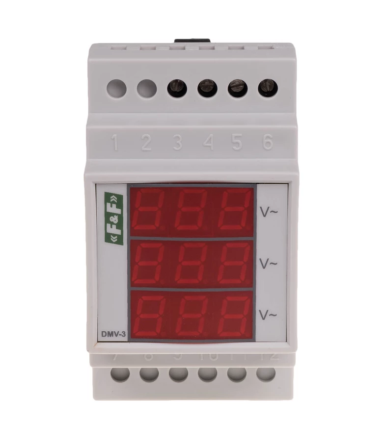 Cyfrowy wskaźnik napięcia, trójfazowy DMV-3 true RMS zakres wskazań 100÷300V 3 moduły o numerze katalogowym DMV3RMS w kategorii Pozostała aparatura pomiarowa, Aparatura kontrolno-pomiarowa. Produkt wyprodukowany przez markę F&F.