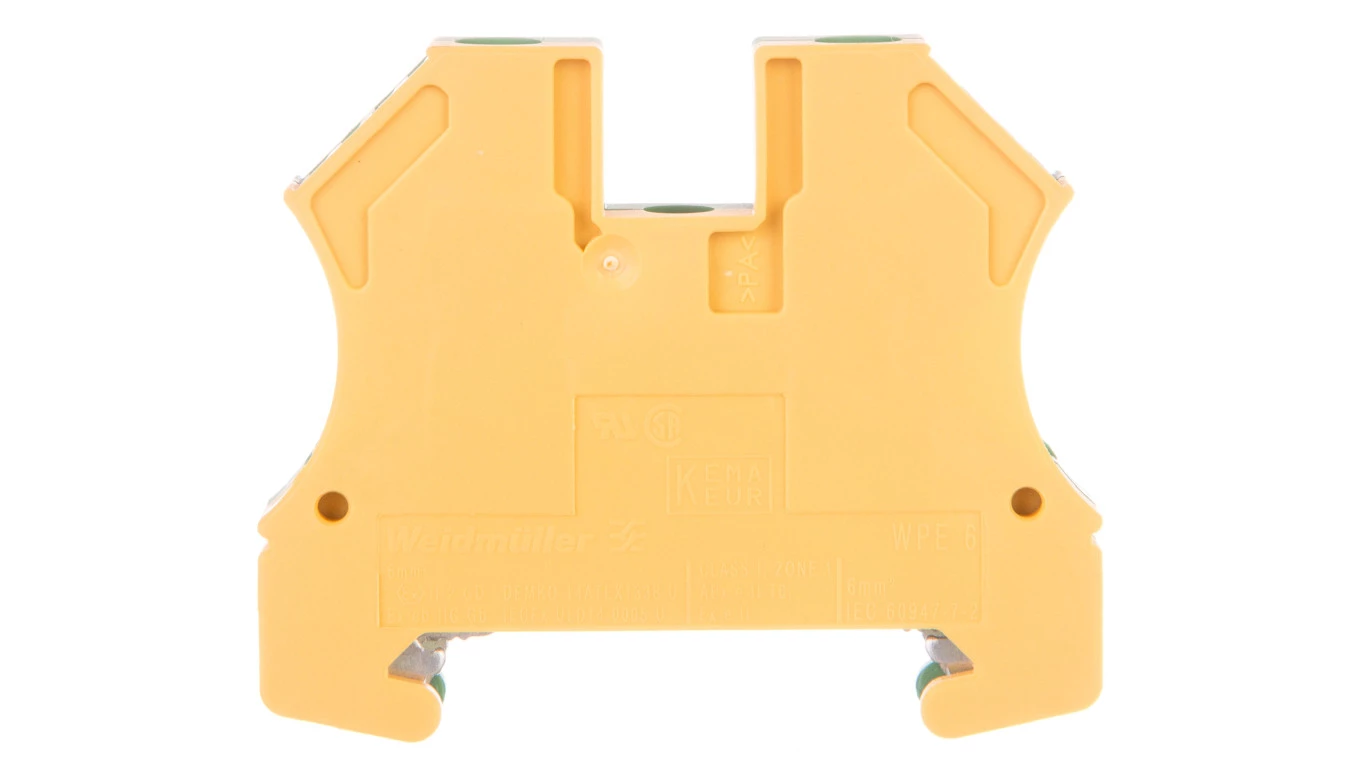 Złączka szynowa ochronna WPE 6 o numerze katalogowym 1010200000 w kategorii Złączki i zaciski ochronne śrubowe, Złączki listwowe śrubowe. Produkt wyprodukowany przez markę WEIDMULLER, seria WPE.