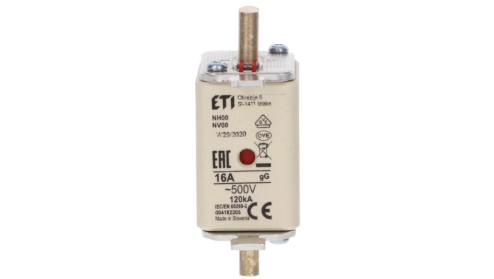 Wkładka topikowa przemysłowa zwłoczna KOMBI NH00 gG 16A/500V o numerze katalogowym 004182205 w kategorii Wkładki bezpiecznikowe NH00, Wkładki bezpiecznikowe NH. Produkt wyprodukowany przez markę ETI, seria KOMBI.