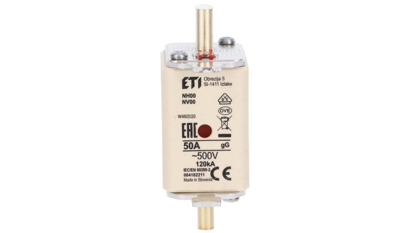 Wkładka topikowa przemysłowa zwłoczna KOMBI NH00 gG 50A/500V o numerze katalogowym 004182211 w kategorii Wkładki bezpiecznikowe NH00, Wkładki bezpiecznikowe NH. Produkt wyprodukowany przez markę ETI, seria KOMBI.