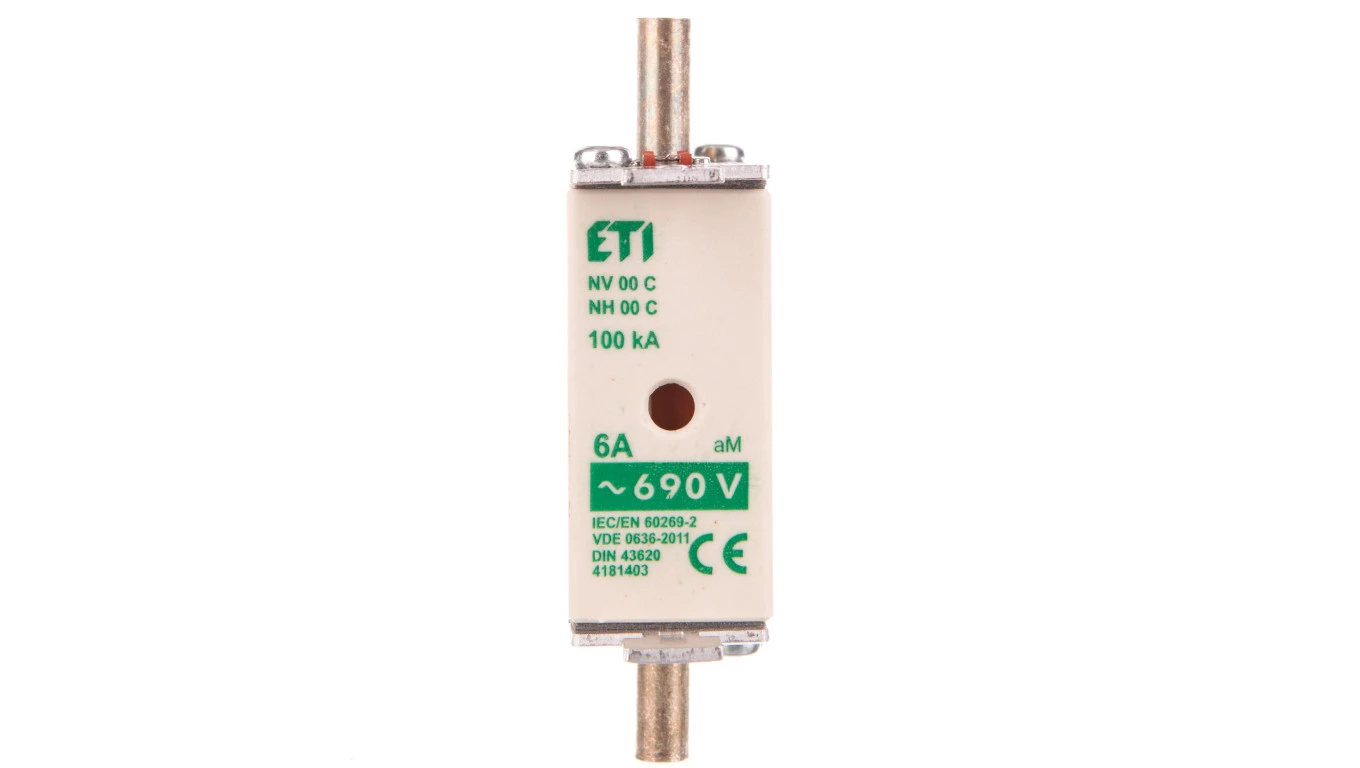 Wkładka topikowa przemysłowa - silnikowa KOMBI NH000 AM 6A/690V o numerze katalogowym 004181403 w kategorii Wkładki bezpiecznikowe NH000, Wkładki bezpiecznikowe NH. Produkt wyprodukowany przez markę ETI.