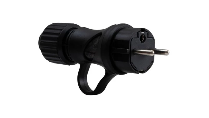 Wtyczka prosta gumowa z uchwytem b/u 16A 2P IP44 FWG czarna 51.224