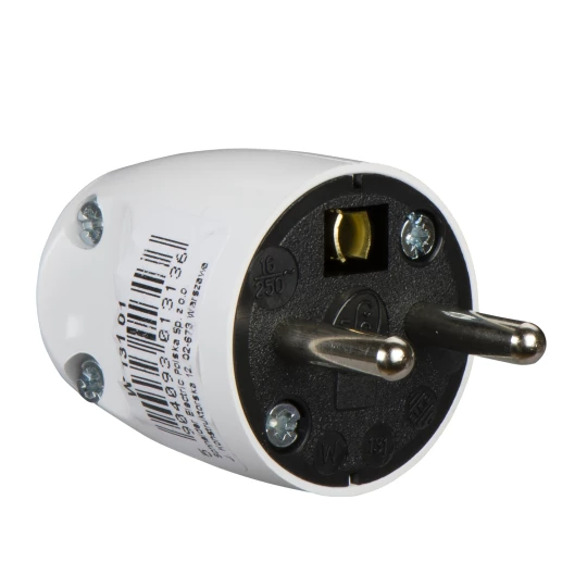 Wtyczka z uziemieniem 16A W-131 biała W13101