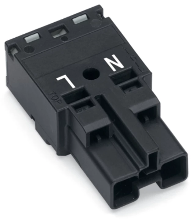 GNIAZDO Z OBUDOWĄ ODCIĄŻAJĄCĄ PRZEWODY 2-BIEG., CZARNY
