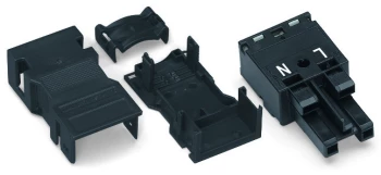 GNIAZDO Z OBUDOWĄ ODCIĄŻAJĄCĄ PRZEWODY 2-BIEG., CZARNY