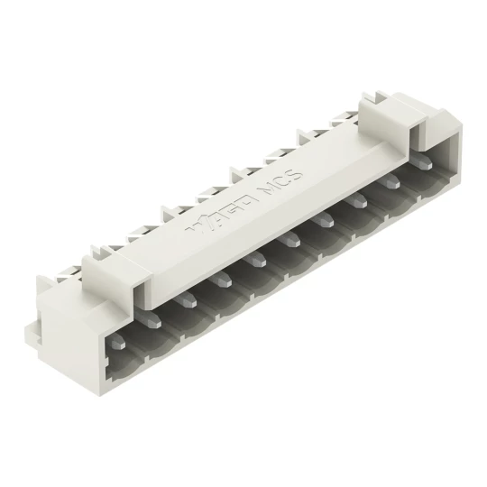 wtyk THT; pin lutowniczy 1,2 x 1,2 mm; konstrukcja kątowa; 100% ochrona przed błędnym połączeniem; raster 5 mm; 10-bieg.; jasnoszary
