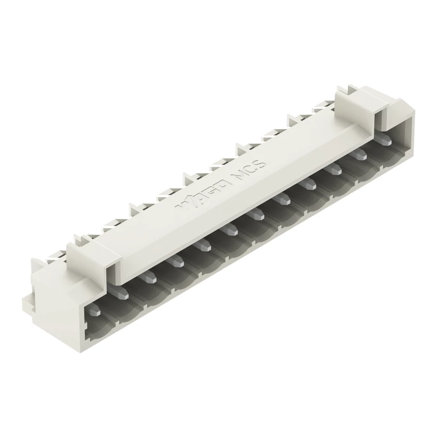 wtyk THT; pin lutowniczy 1,2 x 1,2 mm; konstrukcja kątowa; 100% ochrona przed błędnym połączeniem; raster 5 mm; 12-bieg.; jasnoszary