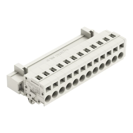 wtyk 1-przewodowy; CAGE CLAMP®; 2,5 mm²; raster 5 mm; 12-bieg.; 100% ochrona przed błędnym połączeniem; TS 35/montaż na płycie; stopki zatrzaskowe; 2,50 mm²; jasnoszary