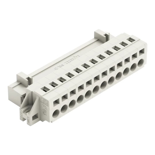 wtyk 1-przewodowy; CAGE CLAMP®; 2,5 mm²; raster 5 mm; 12-bieg.; 100% ochrona przed błędnym połączeniem; kołnierz mocujący; 2,50 mm²; jasnoszary