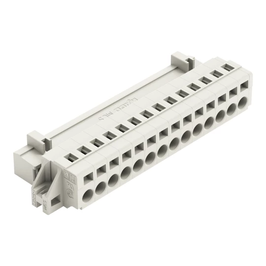 wtyk 1-przewodowy; CAGE CLAMP®; 2,5 mm²; raster 5 mm; 14-bieg.; 100% ochrona przed błędnym połączeniem; kołnierz mocujący; 2,50 mm²; jasnoszary