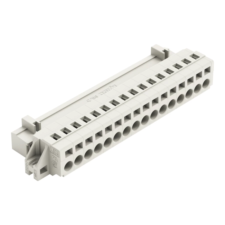 wtyk 1-przewodowy; CAGE CLAMP®; 2,5 mm²; raster 5 mm; 16-bieg.; 100% ochrona przed błędnym połączeniem; kołnierz mocujący; 2,50 mm²; jasnoszary