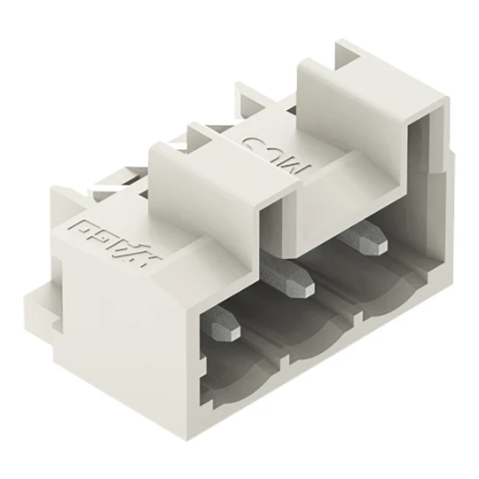 wtyk THT; pin lutowniczy 1,2 x 1,2 mm; konstrukcja kątowa; 100% ochrona przed błędnym połączeniem; raster 5 mm; 3-bieg.; jasnoszary