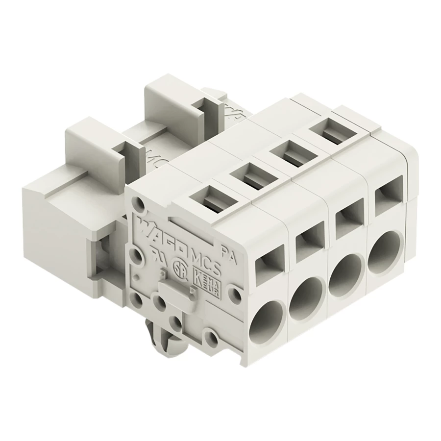 wtyk 1-przewodowy; CAGE CLAMP®; 2,5 mm²; raster 5 mm; 4-bieg.; 100% ochrona przed błędnym połączeniem; TS 35/montaż na płycie; stopki zatrzaskowe; 2,50 mm²; jasnoszary