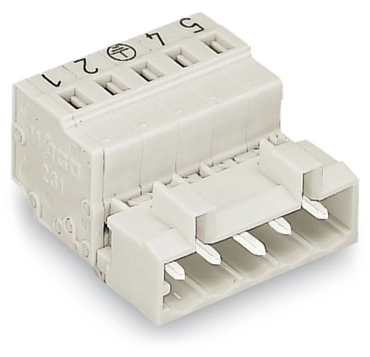 wtyk 1-przewodowy; CAGE CLAMP®; 2,5 mm²; raster 5 mm; 4-bieg.; wyprzedzający styk PE; 100% ochrona przed błędnym połączeniem; TS 35/montaż na płycie; stopki zatrzaskowe; z nadrukiem bezpośrednim; 2,50 mm²; jasnoszary
