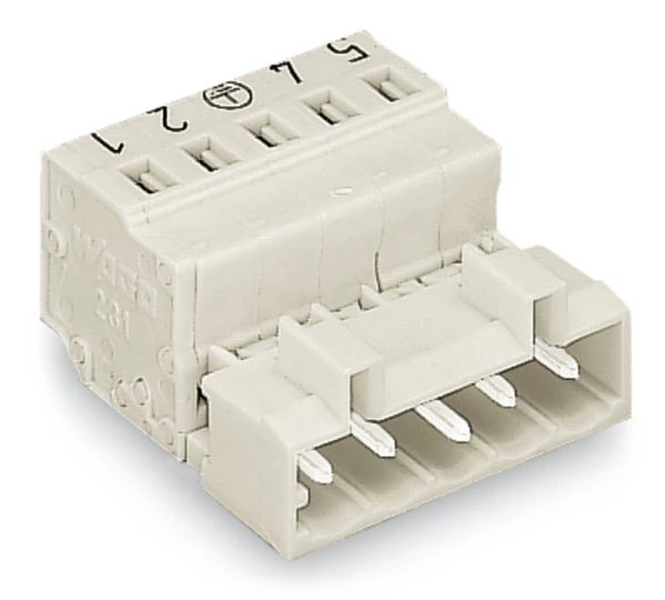 wtyk 1-przewodowy; CAGE CLAMP®; 2,5 mm²; raster 5 mm; 5-bieg.; wyprzedzający styk PE; 100% ochrona przed błędnym połączeniem; z nadrukiem bezpośrednim; 2,50 mm²; jasnoszary