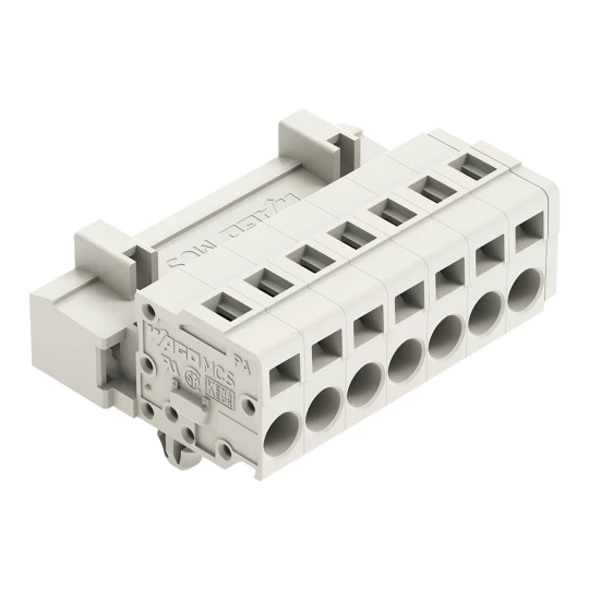 wtyk 1-przewodowy; CAGE CLAMP®; 2,5 mm²; raster 5 mm; 7-bieg.; 100% ochrona przed błędnym połączeniem; TS 35/montaż na płycie; stopki zatrzaskowe; 2,50 mm²; jasnoszary