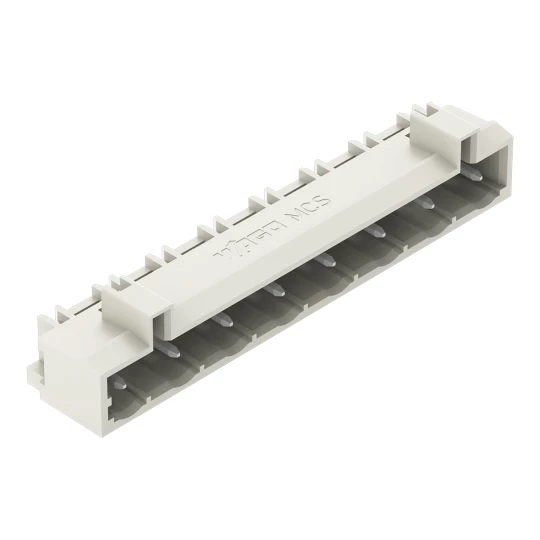 wtyk THT; pin lutowniczy 1,0 x 1,0 mm; konstrukcja kątowa; 100% ochrona przed błędnym połączeniem; raster 7,5 mm; 8-bieg.; jasnoszary