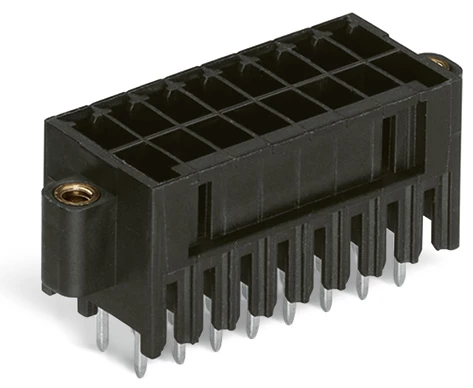 wtyk THT 2-rzędowy; pin lutowniczy 0,8 x 0,8 mm; konstrukcja prosta; 100% ochrona przed błędnym połączeniem; gwintowy uchwyt montażowy; raster 3,5 mm; 16-bieg.; czarny