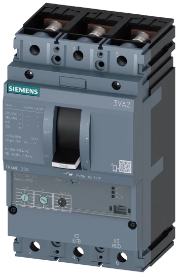 WYŁĄCZNIK 3VA22; 3-BIEG. IN=200A; ZDOL. ZWARĆ. ICU=110KA 415 V AC; Z WYZW. ELEKTRONICZNYM ETU350M I